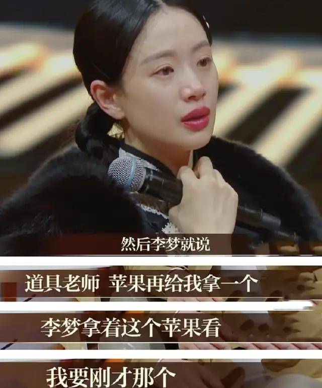 一场补拍的戏,只必要她削一个苹果,可李梦却马上耍起了大牌,非要道具组找到和之前拍摄时 “果皮纹理齐全相像” 的苹果,不然就不拍。