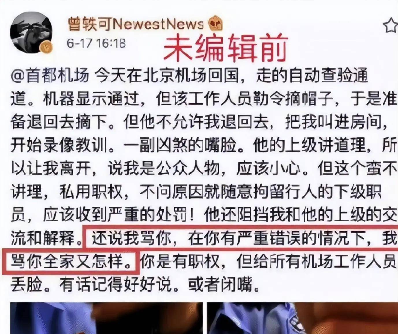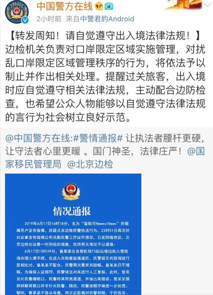 事故发酵后,北京边检官方微博发外了传递,无缺还原了事项的总计毕竟,真切指出曾轶可不单不配合安检,还存正在詈骂民警的动作。